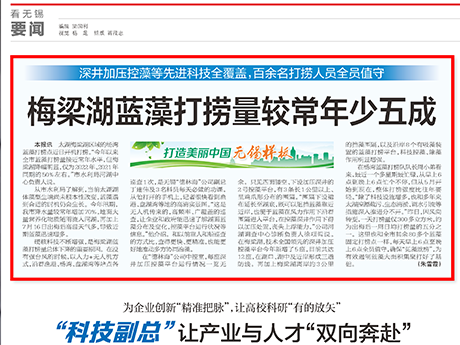 公司研發(fā)的加壓控藻船,以玻璃鋼船體為平臺(tái),配置藍(lán)藻打撈、壓力控藻和曝氣裝置...